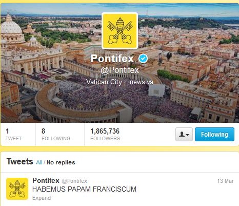 Besides, now all previous tweet have been cancelled and you can now only see the “annunciation’s tweet” almost to demonstrate a net cut with the past. After all Benedict XVI was not a beloved Pope. He made some clear U turns in comparison to his predecessor and his eraly departure as a Pope (the first in Catholic church history) still remains highly controversial. Francis I seems to already display a completely different approach in which he expresses closure to the people and humility towards the role that has been thrust upon him. Will this reflect into his communication strategy? Will he be as close to the people as savvy in handling new communication channel? Of course in this case I’m referring more to his media/PR people rather than the 76-year-old Pope himself.